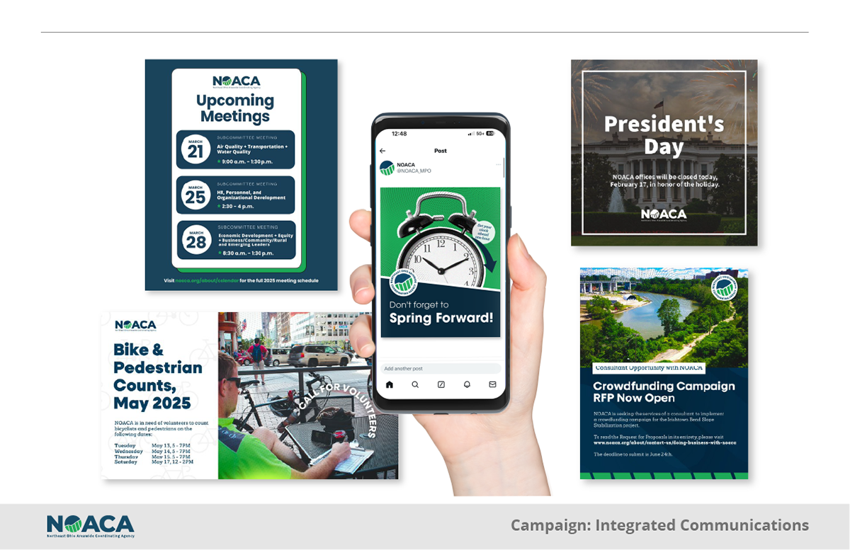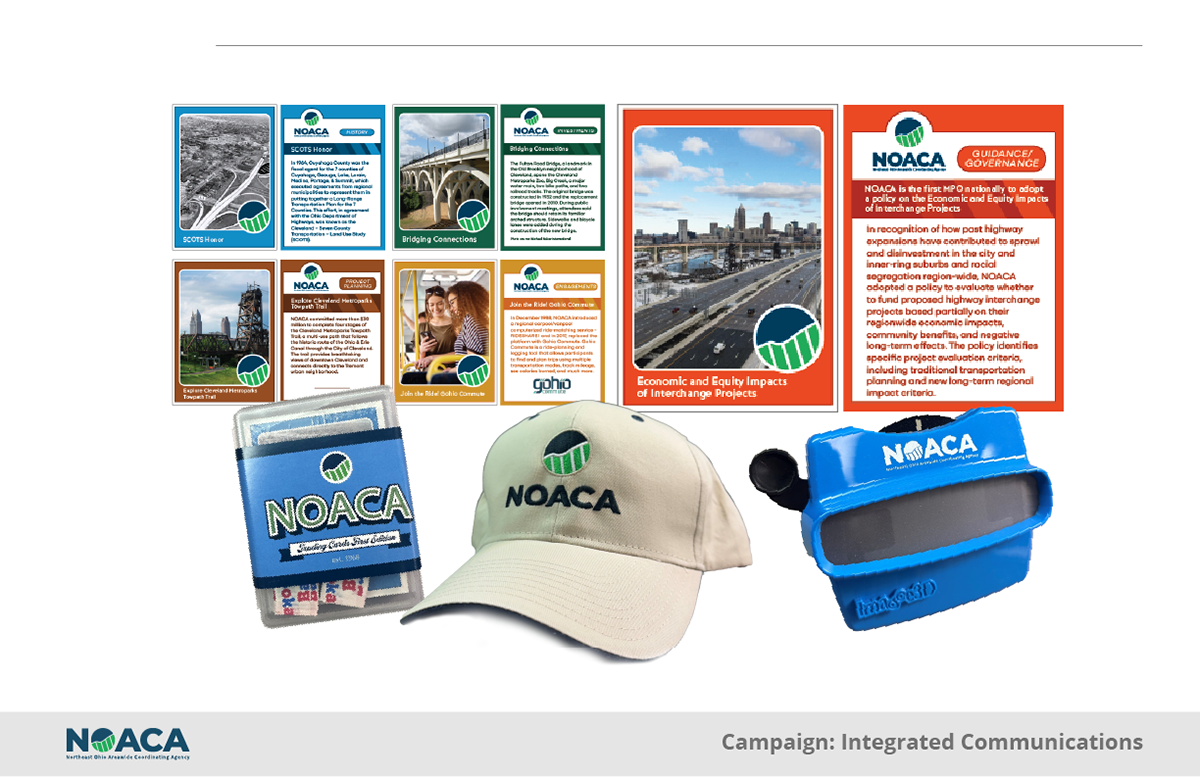 Marketing pieces designed for NOACA, a federal and state funded metropolitan planning organization serving Cuyahoga, Geauga, Lake, Lorain, and Medina counties.